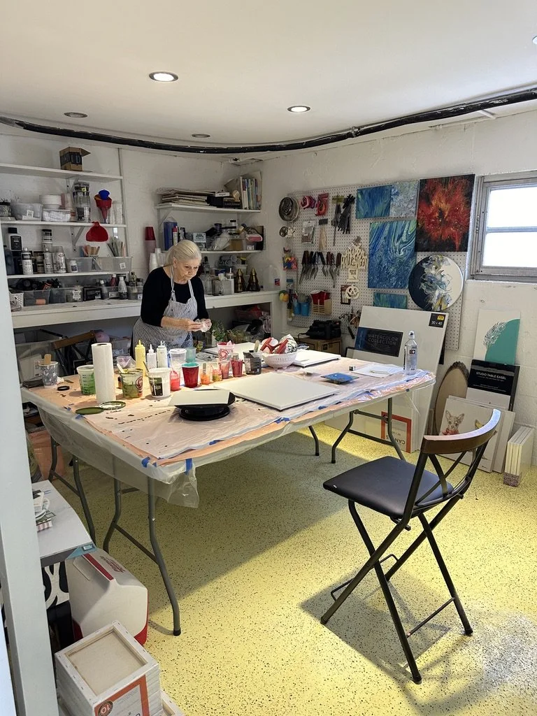 At 84 years young, Valerie brings a lifetime of creativity and passion to her fluid art creations.