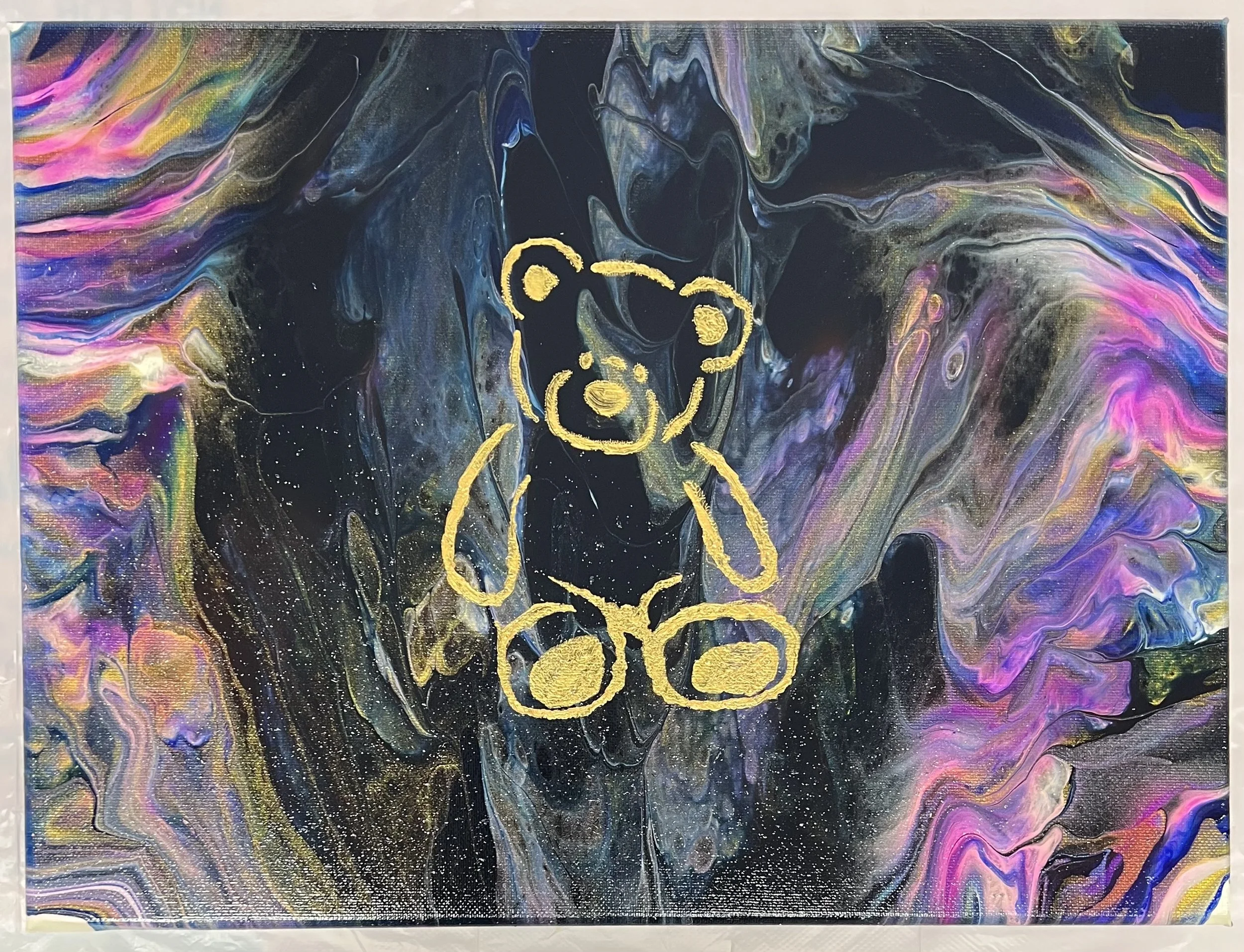 "Eternal Hugs" is a poignant and evocative pour painting created in honor of my beloved cousin, Ronnie Gillespie, who passed away unexpectedly. Throughout her life, she poured her heart into crafting hundreds of memory bears, offering comfort and solace to countless individuals. This painting is a tribute to her generous spirit and the warmth she shared.